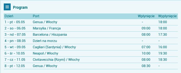 Aktualny program rejsu jest dostępny na stronie internetowej >>>