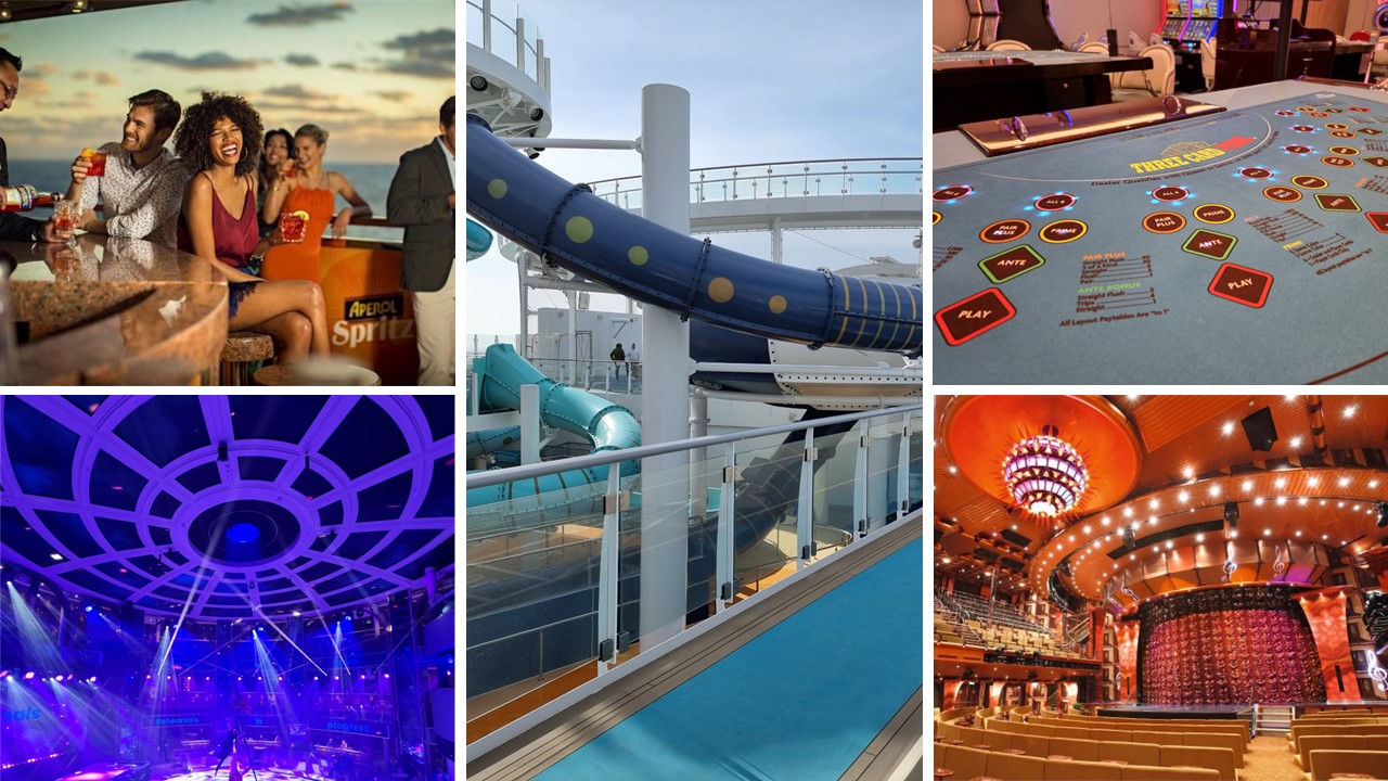 Podczas rejsu pasażerowie mają duży wybór atrakcji (również w czasie postoju statku w portach), poniżej wymieniamy tylko niektóre z nich: